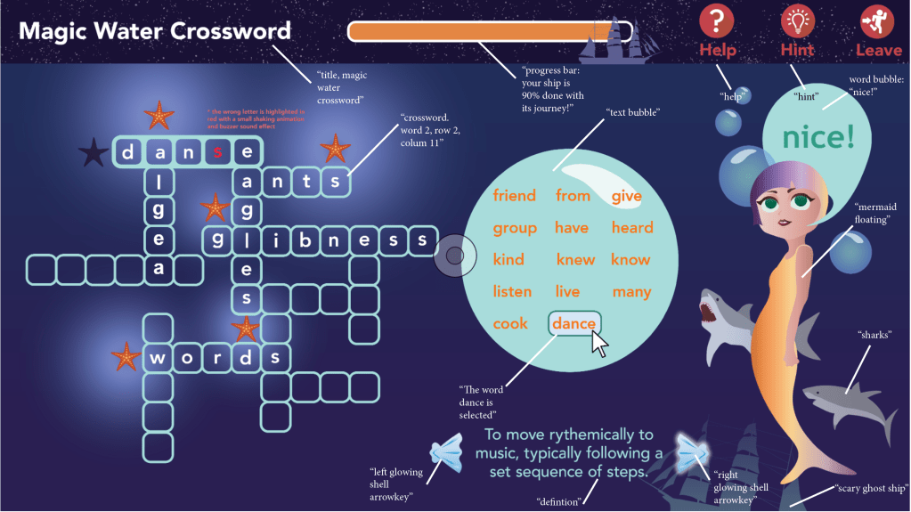- Design and implement an engaging, functional crossword puzzle game