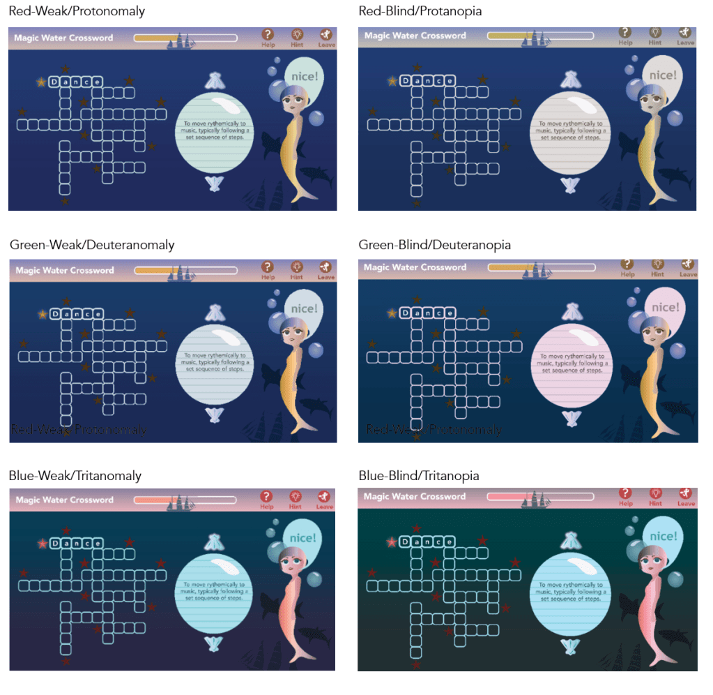 - Do not rely on colors, especially green and red for correct/incorrect answers.