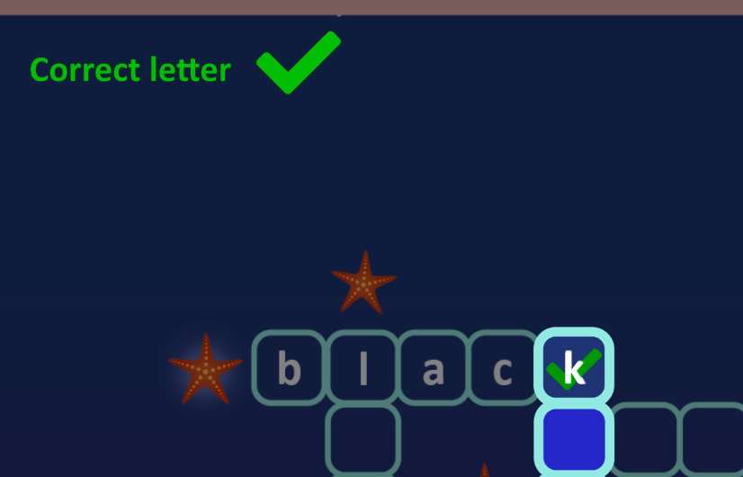 Stars will glow when words are typed correctly, saving the mermaid character from being stuck in the dark.