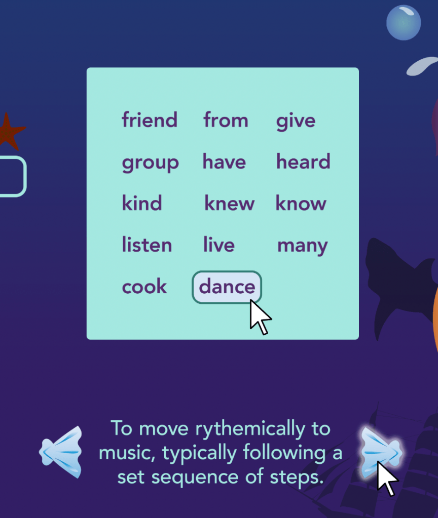 - Both typing words out and selecting words from a word bank are useful game play options.